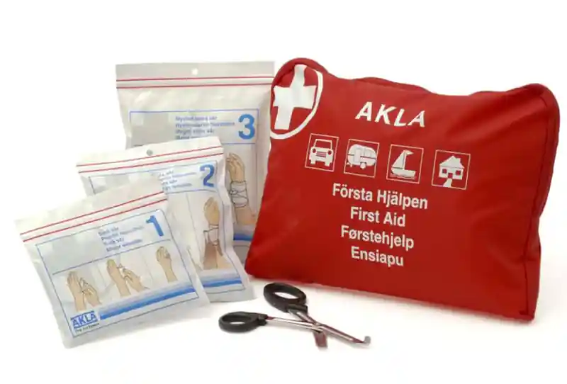 En basutrustad kudde. Baserad på 1-2-3-systemet, påsar med tydliga instruktioner. Innehållet anpassat till skadans art. SNABBT-TRYGGT-ENKELT.