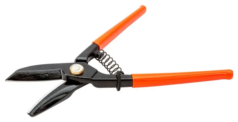 Bahco plåtsax rakklippande. Klippkapacitet: 0,6 mm (rostfritt stål), 1,2 mm (kallvalsat stål).