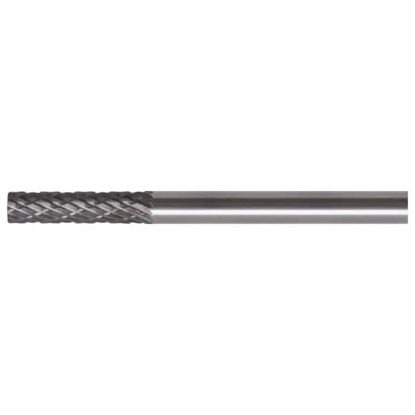 Cylindrisk roterande fil för planing och kantgradning. Filen är mediumtandad med spånbrytare och tillverkad i hårdmetall.