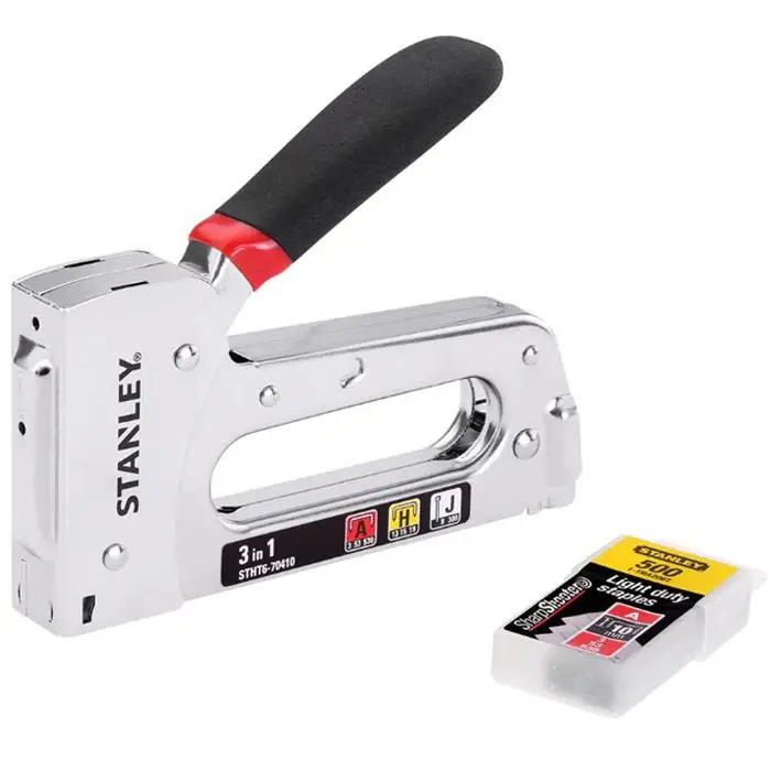 Häftapparat med TR110-design med magasin för fin häftklammer och dyckert. Handtag med liten vinkel för enkel tryckning och påfyllning på undersidan, häftklamrar medföljer.