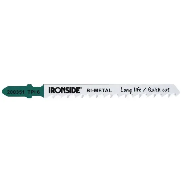 Ett 100x8x1,3 mm sticksågblad med högkvalitativ bimetall-tandning för snabba skär, för användning i trä med tjocklek 5-50 mm. Bladet passar för rak, grov och precision sågning i hårda och mjuka träslag, alla sorters skivor, även laminerade. Levereras som 5-pack.