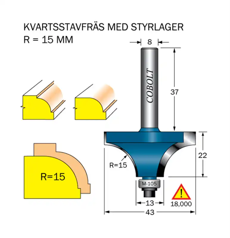 Om du skall ha en enkel och stilren kantprofil så får du detta med en kvartsstavsfräs. Kvartsstavsfräsar används för dekorativ profilering av massiva trä och plastkanter inom möbeltillverkning, utställningar, montrar och allmänt snickeri- och inredningsarbete. Kullager gör det möjligt att styra fräsen direkt på kanten, även rundskurna kanter.