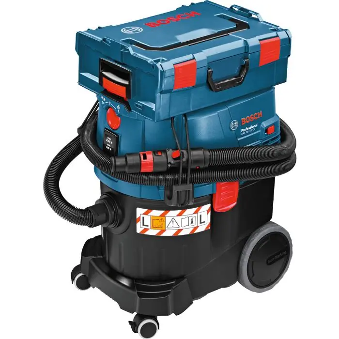 Bosch GAS 35 L SFC+ Professional är en 35 liters våt- och torrdammsugare med halvautomatisk filterrengöring. Smart förvaring och transport med L-BOXX på dammsugarens topp! Praktiskt eluttag med automatisk start/stopp för anslutning till elverktyg.