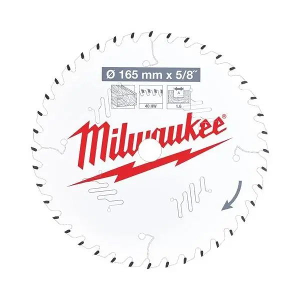 Milwaukee CSB P W är en sågklinga med en klingdiameter på 165 mm samt 15,87 mm (5/8″) i klinghålsdiameter för sågning i alla olika typer av träslag. Klingan är tillverkad av högkvalitativt laserskuret stål och har PTFE-beläggning. Detta garanterar hög noggranhet samt att klingan kapar svalare och utan att materialet fastnar på klingan. PTFE-beläggningen skyddar även mot korrosion och ansamling av harts. Milwaukee CSB P W har 40 stycken ATB-tänder och är optimerad för batteridrivet. Extra tunn kapbredd för maximal drifttid.