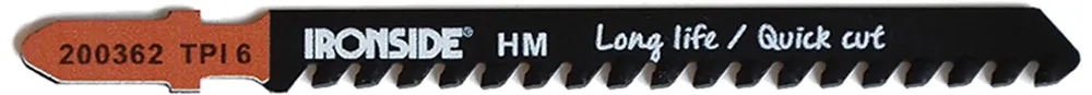 Sticksågsblad på 100x8x1,2 mm för plast/epoxi/glasfiber (5-20 mm), gipsskivor och cementfiberplattor (5-50 mm). Levereras som 3-pack.