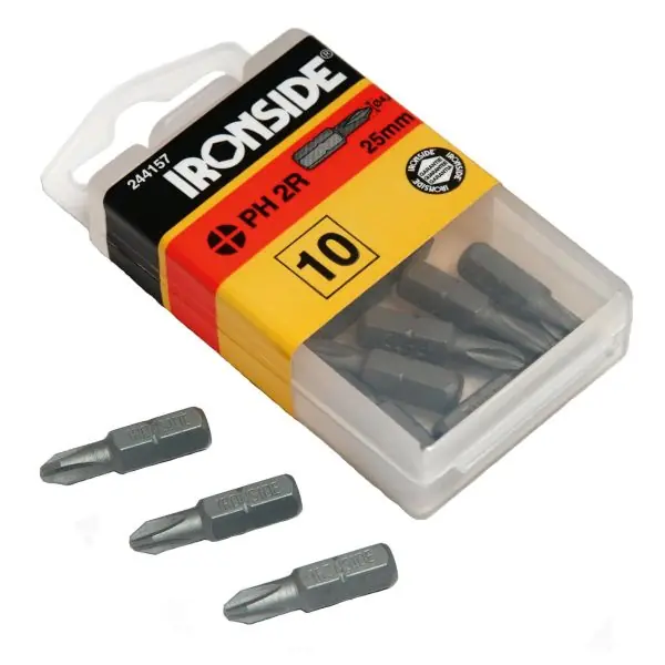 10-pack med bits av legerat specialstål med 1/4″-sexkantsfäste och nedsvarvad PH2-spets. För dragning av gipsskruv. SB-pack.