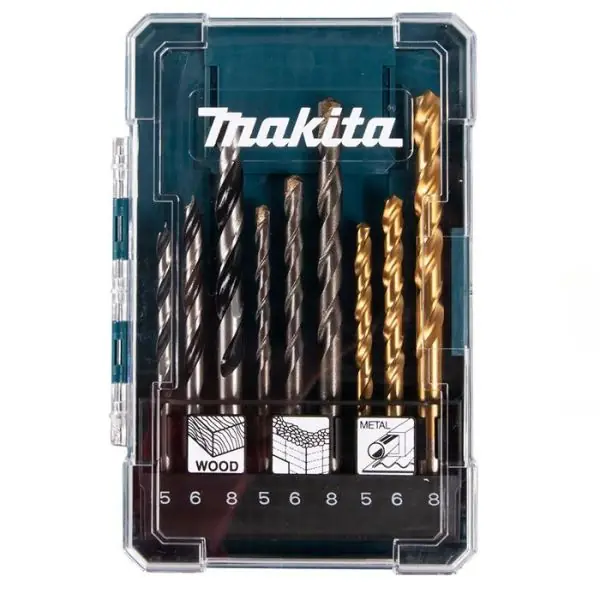 Makita D-71962 är ett borrset innehållandes 9 st. borrar med diametrarna 5, 6 och 8 mm. Satsen lämpar sig för borrning i trä, metall, mur-tegel.