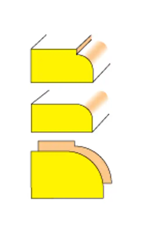 10 st avrundningsfräsar med radie: 2 mm, 2.4 mm, 3.2 mm, 4.8 mm, 6.4 mm, 8 mm, 9.5 mm, 12.7 mm, 16 mm & 19 mm samt två extra styrlager