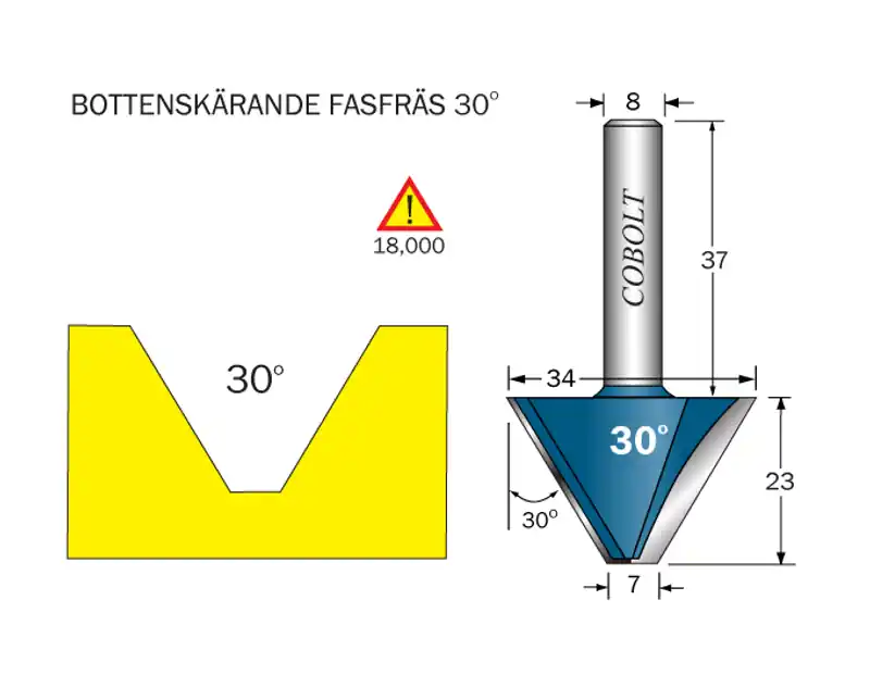 Cobolt Fasfräs 30° L=23 D1=34 D2=7 S=8 Fri frakt