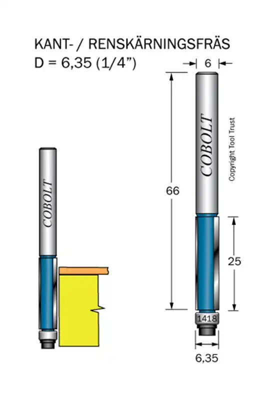 – För kantfräsning av laminat och andra beläggningar samt för kopierfräsning efter mall.