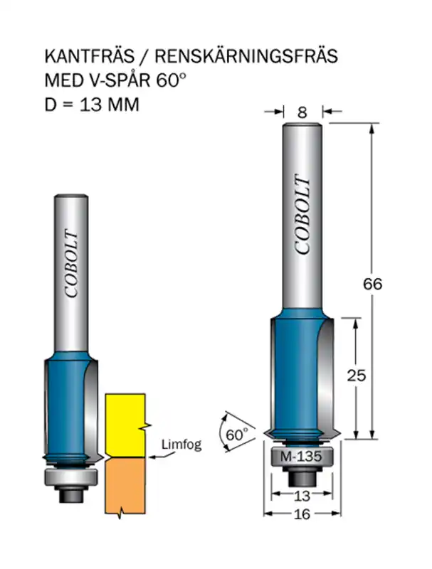 Cobolt Kantfräs med V-spår D=13 L=25 S=8 Kampanjpris