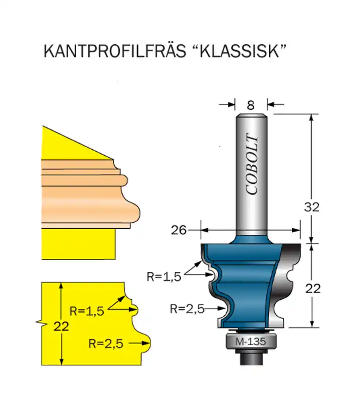 Cobolt kantprofilfräs. Med styrlager M-135.