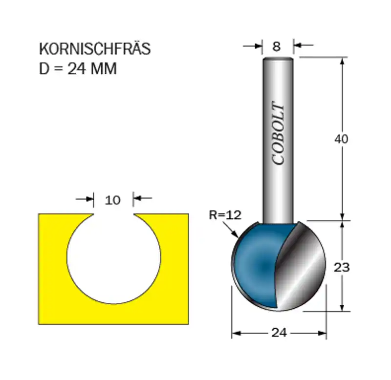 Cobolt Kornischfräs R=12 D=24 L=23 S=8 Premium