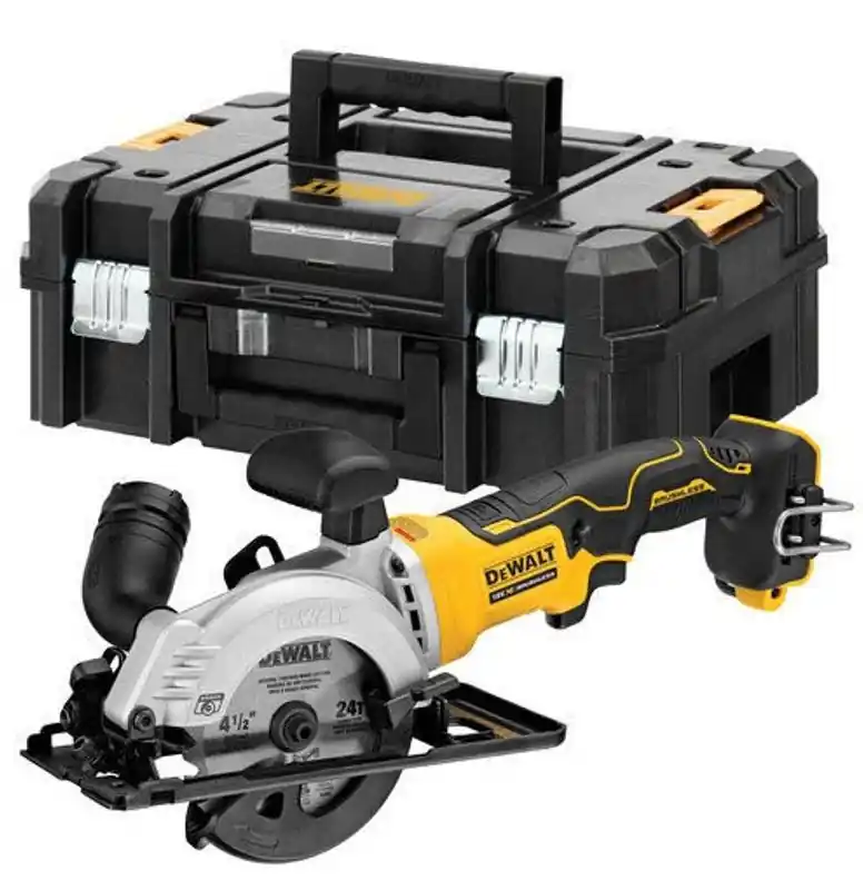 DeWalt DCS571NT är en robust och användarvänlig cirkelsåg som erbjuder professionella och hemmafixare den precision och kraft som krävs för en mängd olika sågprojekt. Med sin 115 mm och 24 tänders hårdmetallklinga levererar denna cirkelsåg en effektiv sågning och en högkvalitativ finish, vilket gör den idealisk för både grova och fina sågarbeten. Sågens extra handtag erbjuder ett förbättrat grepp och ökad säkerhet, vilket är särskilt viktigt under långa arbetspass eller vid komplexa såguppgifter.