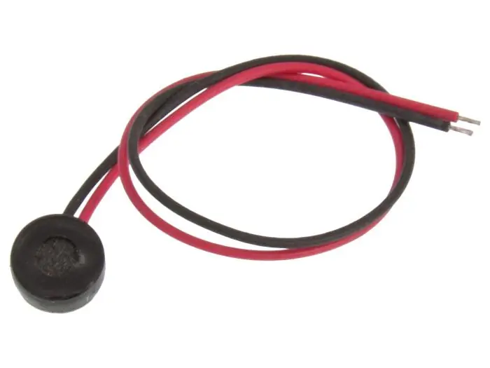 Miniatyrmikrofon av elektrettyp. Mikrofonen kräver aktiv drivning.