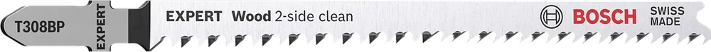 Finsnickare och träarbetare har alltid satt en ära i att se till att den ”rena sidan” av ett sticksågssnitt hamnar på den synliga delen av arbetsmaterialet. Ibland går det att vända på arbetsstycket. andra gånger kan sticksågen helt enkelt hållas upp och ner. Eller så kan du använda EXPERT ’Wood 2-side clean’. som erbjuder perfekta snitt utan flisning på båda sidorna. tack vare dubbla tandrader.