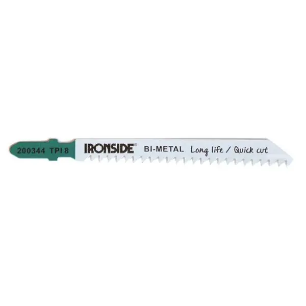 Ett 100×9,6×1,3 mm sticksågblad med högkvalitativ bimetall-tandning för snabba skär, för användning i trä med tjocklek 4-50 mm. Bladet passar för rak och grov sågning i hårda och mjuka träslag, spånskiva, plywood och fiberskivor. Levereras som 5-pack.