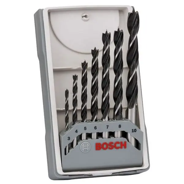 7-delars träborrset Ø 3, 4, 5, 6, 7, 8 och 10 mm i praktisk förpackning.