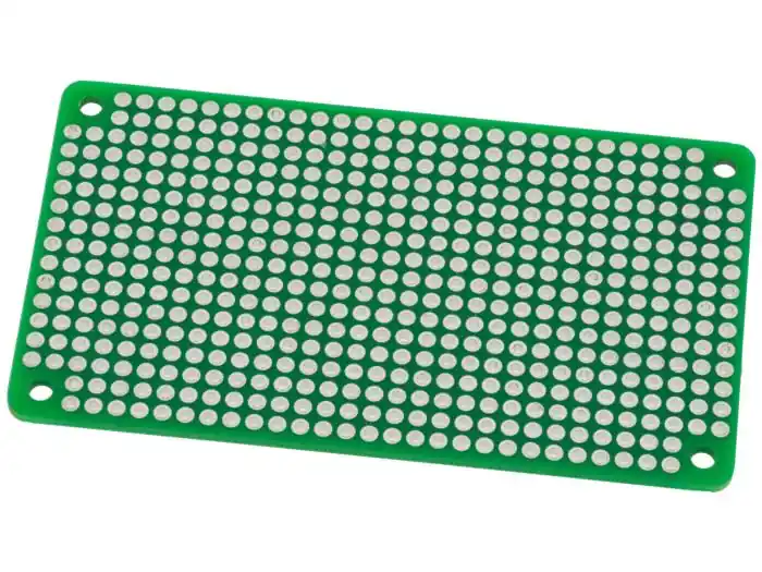 Experimentkort som passar i apparatlådorna PC002, art.nr. 41016804 och 41016805. Hålen är ej sammanbundna. Ledningsbanor görs enkelt genom att böja komponentbenen eller med kopplingstråd.