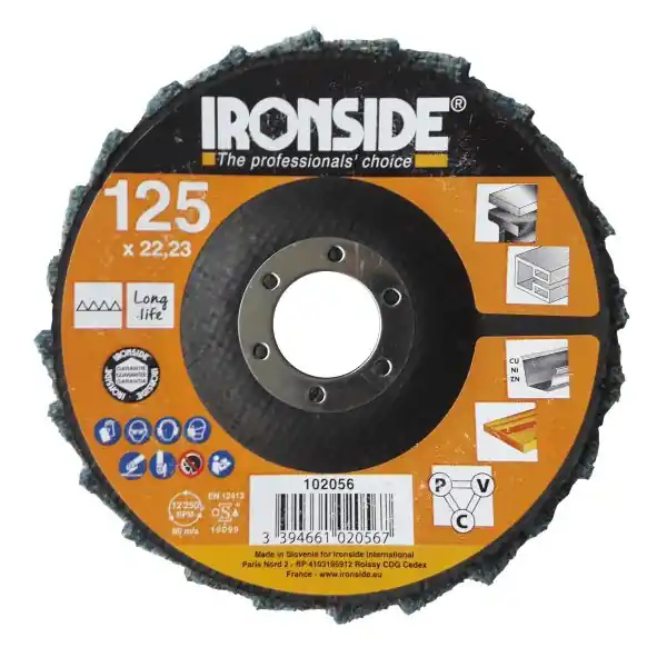 Fin lamellrondell avsedd för polering med vinkelslipmaskiner vid perifer hastighet upp till 80 m/s. För strukturella stål och kolstål i automitive, flyg- och tillverkningsindustrin. Slip och polerskiva med topp-prestanda. Avsedda för finslipning och polering av stora ytor i stål, rostfritt, metaller, gummi, plast och glas.