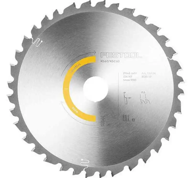 Festool Universalsågklinga som passar till Festools Kapex KS 60. Sågklingan har en diameter på 216mm och ett centrumhål som är 30mm. Avsedd för universell användning till trä, trämaterial, byggskivor, glasfiberskivor, mjuka plaster etc.