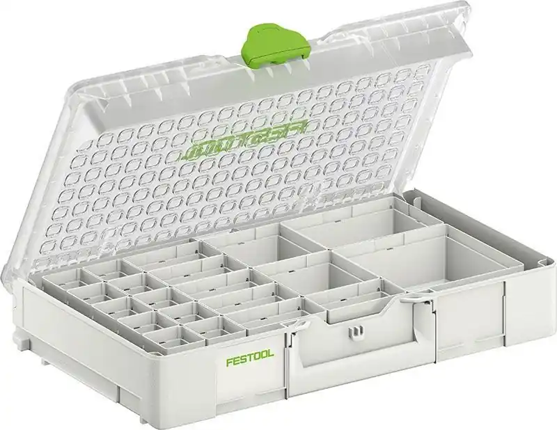 Med nya SYSTAINER³ har Festool tillsammans med TANOS och bott skapat ett genomtänkt mobilitetssystem som binder ihop bilen verkstaden och arbetsplatsen. Organizer modellen i standarddjup med extra bredd ger stort utrymme för smådelar tillbehör och förbrukning och det transparenta locket visar direkt var allt finns. Du får snabb åtkomst och färre avbrott eftersom du slipper leta i mörka lådor.