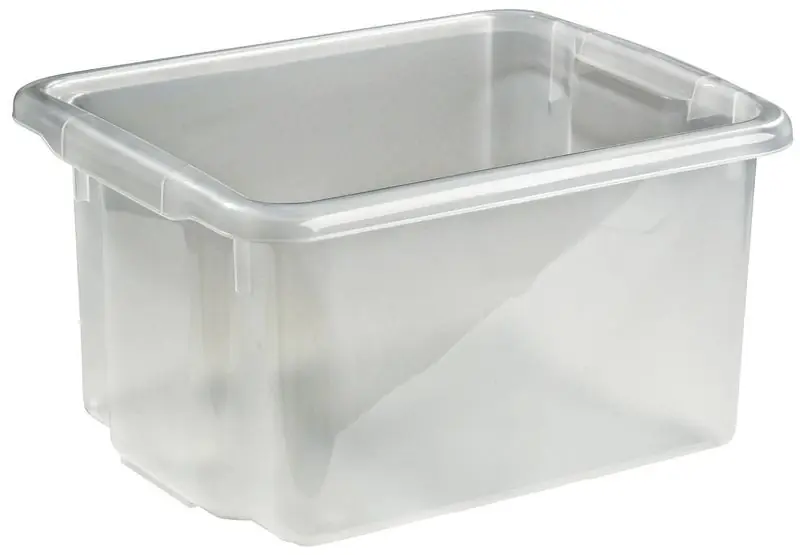 Robust och praktisk förvaringslåda. Lådan är trav- och stapelbar beroende på åt vilket håll den vänds.