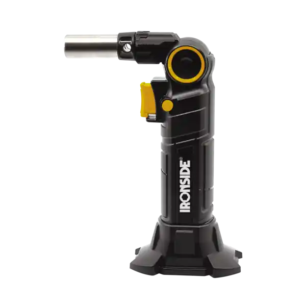 Ironside 203176 är en vinklingsbar gasbrännare med tre fasta vinklar, 0°-45°-90° för bästa åtkomst. Tålig design för tuffare tag med en brinntid på 45-60min/fyllning. Flamtemperatur på 1300° för t.ex krympslang, lödning, färgborttagning m.m. Drivs med butangas och kan återfyllas från exempelvis butangasflask.