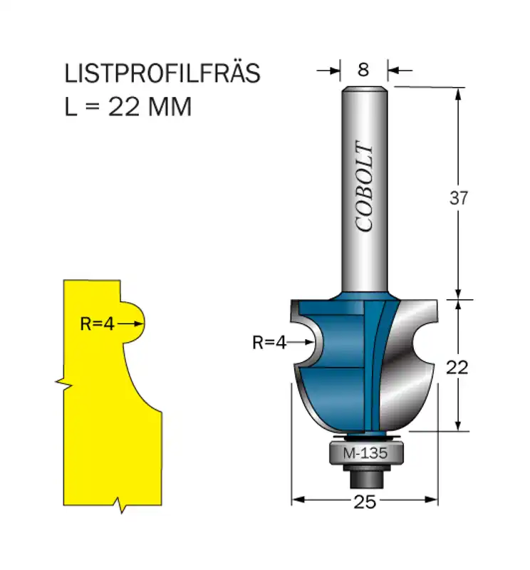 Cobolt listprofilfräs. Med styrlager M-135.