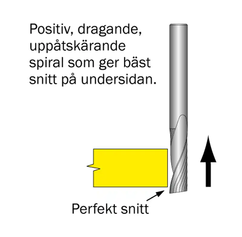 Spiralfräs för mjuk plast. 1-skärig, positiv.