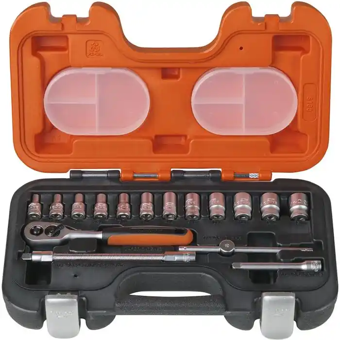 EgenskaperHylsnyckelsats 1/4″ISO 1174DIN 3120Verktyg av mattförkromat högkvalitativt stålVäska i HDPE plastInnehåller 16 delar12 st 1/4″ Sexkanthylsor Dynamic Drive 4, 4,5, 5, 5,5, 6, 7, 8, 9, 10, 11, 12, 13 mm1 st 1/4″ Spärrhandtag med 60 tänder och tvåkomponentshandtag1 st 1/4″ T-stångshandtag 100 mm1 st 1/4″ Förlängare 75 mm1 st 1/4″ Böjbar förlängare 150 mm