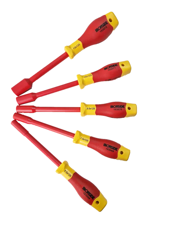Ironside 103073 är en hylsskruvmejselsats i 5 delar. Isolerade och godkända hylsmejslar enligt VDE / EN/IEC 60900 för arbete under spänning upp till 1000 V.