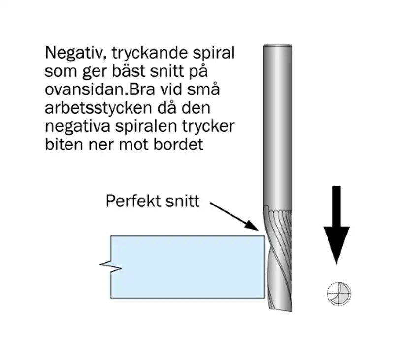 Spiralfräs för hård plast. 1-skärig, negativ.