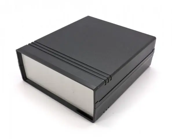 Praktisk låda i svart plast och paneler av aluminium.