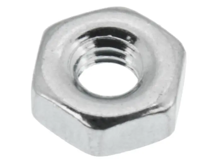 Mutter med M2.5-gänga. Rostfri A2. DIN934. Fabrikat: Bossard – Schweiz.