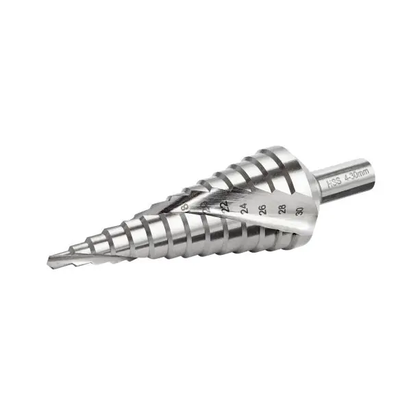 Stegborr i snabbstål med cylindriskt fäste. CBN-slipade skär, vilket ger en mycket vass skäregg. För stegvis upptagning av runda hål i plåt, plast etc.