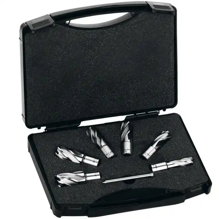 6-delars HSS ringformade kärnborrar med weldon-fäste för maximal hållbarhet och livslängd. Dimensioner: Ø 14, 16, 18, 20, 22, 22, 24 mm.