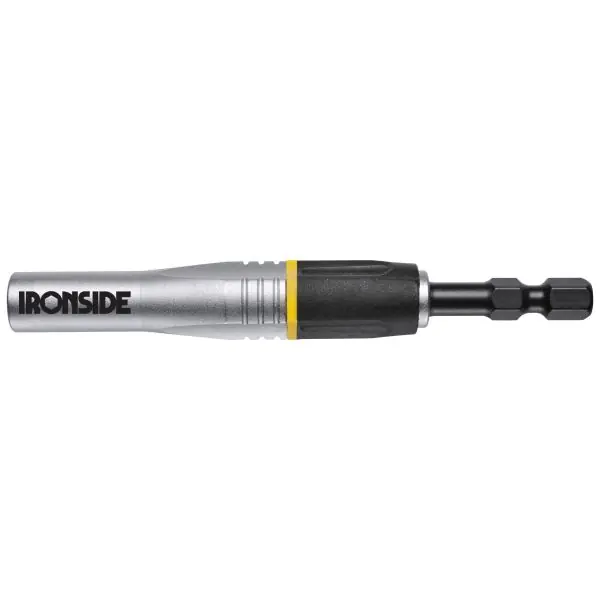 Magnetisk 1/4″ kraftbitshållare med en längd på 95 mm, speciellt framtagen för användning tillsammans med slående maskiner. Absorberar effektivt slag och minimerar stress på bitsen, genom tre separata torsionszoner, vilket ger bitsen avsevärt bättre livslängd.
