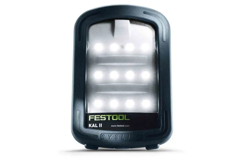 Festool arbetsbelysning SYSLITE KAL II ger suveränt ljus genom 12 högeffektiva LED:er. Lång brinntid tack vare effektstarkt Li-jonbatteri med 7,2 V / 2,9 Ah. Mycket bred spridningsvinkel på 170°.