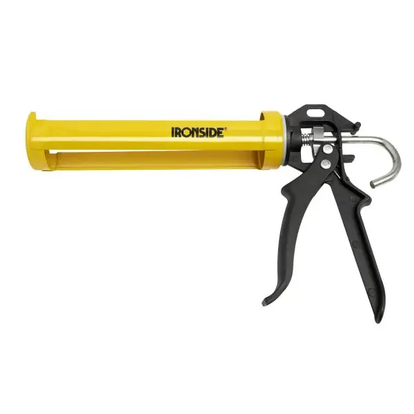 Fogpistol i lackerad aluminium/stål avsedd för 310 ml patroner. Automatisk återgång gör arbetet enklare och minimerar dropp och spill. Med hängkrok samt rörlig kropp för att förenkla vid arbeten i olika vinklar.