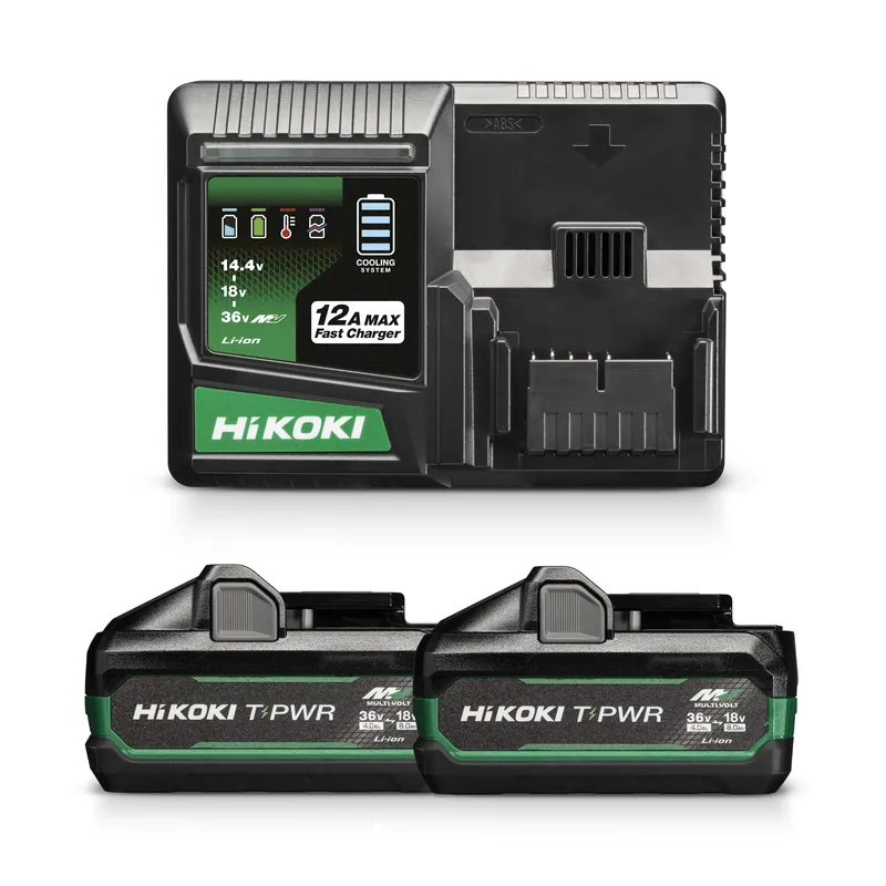 Hikoki 2XBSL3640MVT+UC36YSL2 är ett laddpaket som innehåller 2 stycken batterier och en laddare. Med Tabless-cellteknik med hög effekt och prestanda för krävande jobb. Maximal uteffekt upp till 2 160 W: Levererar upp till 50% mer kraft jämfört med BSL36B18 och BSL36B18X, för att hantera tunga applikationer med lätthet och effektivitet. Längre körtid: Längre driftstid och håller sig svalt även under krävande applikationer tack vare Tabless-cellteknik som genererar mindre motstånd och mindre värme. Smart batteri: Kan användas både i 18V (4Ah) och 36V-verktyg (8Ah) – både lätta och tunga applikationer. Ökad hållbarhet: Den stöttåliga och vattenresistenta designen (gummi överdrag) förbättrar batteriets hållbarhet. Batteriindikator som visar batterinivå. Batteriskyddsystem gör att batteriet klarar efterladdning/överladdning och har låg självurladdning och kan långtidslagras. Snabbladdare med USB, för laddning av Li-ion 14,4-36V MULTI VOLT-batterier med slidefäste. Snabb, laddar 5Ah BSL36A18X på ca. 25 minuter och 8Ah BSL3640MVT på 40 minuter.