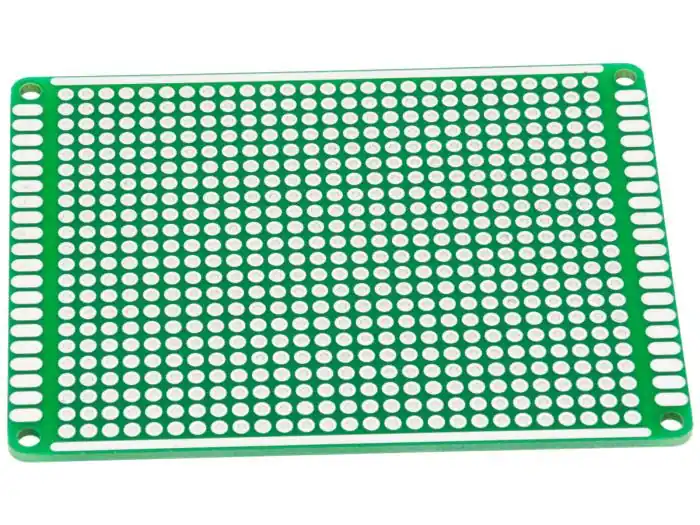 Electrokit ProtoPCB EKB13 är ett experimentkort med 594 genompläterade hål och två parallella längsgående ledningsbanor för strömförsörjning. Avsett för prototyputveckling, utbildning och tillverkning av mindre serier. Kortet är dubbelsidigt med ett rutnät av lödöar. Komponenter, integrerade kretsar och ledningsförbindelser kan monteras på båda sidor av kortet. Tillverkat i FR-4 glasfibermaterial vilket ger god mekanisk stabilitet och tål upprepad lödning. Kortet har ett referensrutnät med märkning i X- och Y-led, vilket är mycket användbart vid serietillverkning och dokumentation.