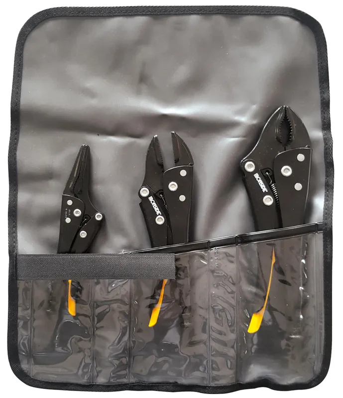 En 3 delar låstångsats med tre självlåsande och mjuköppnande låstänger som är epoxibelagda. Satsen innehåller 1 styck spetslåstång 176 mm, 1 styck låstång med avbitare 238 mm och 1 styck låstång med raka käftar 192 mm. Levereras komplett i plastfodral.
