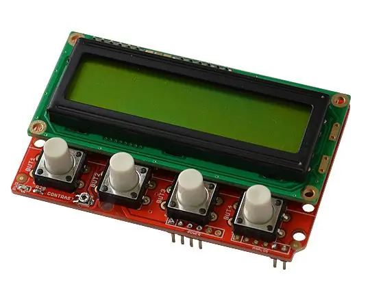 Shield för att ge en LCD-skärm med bakgrundsbelysning och fyra knappar till Arduino. Perfekt för att snabbt och enkelt göra ett interface till ett projekt.