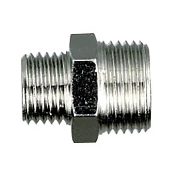 Pela 89712 är en mellannippel som är dubbelgängad med utvändig gängning. Av mässing.