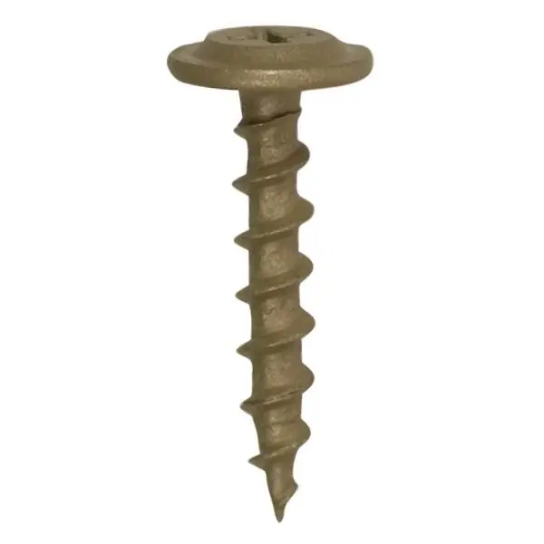 Montageskruv för montering av plåt (max 0,9 mm) och skivmaterial mot träunderlag där ett plant huvud krävs. Skruven har ett lågkullrigt brickhuvud med huvudhöjden 2,5 mm.