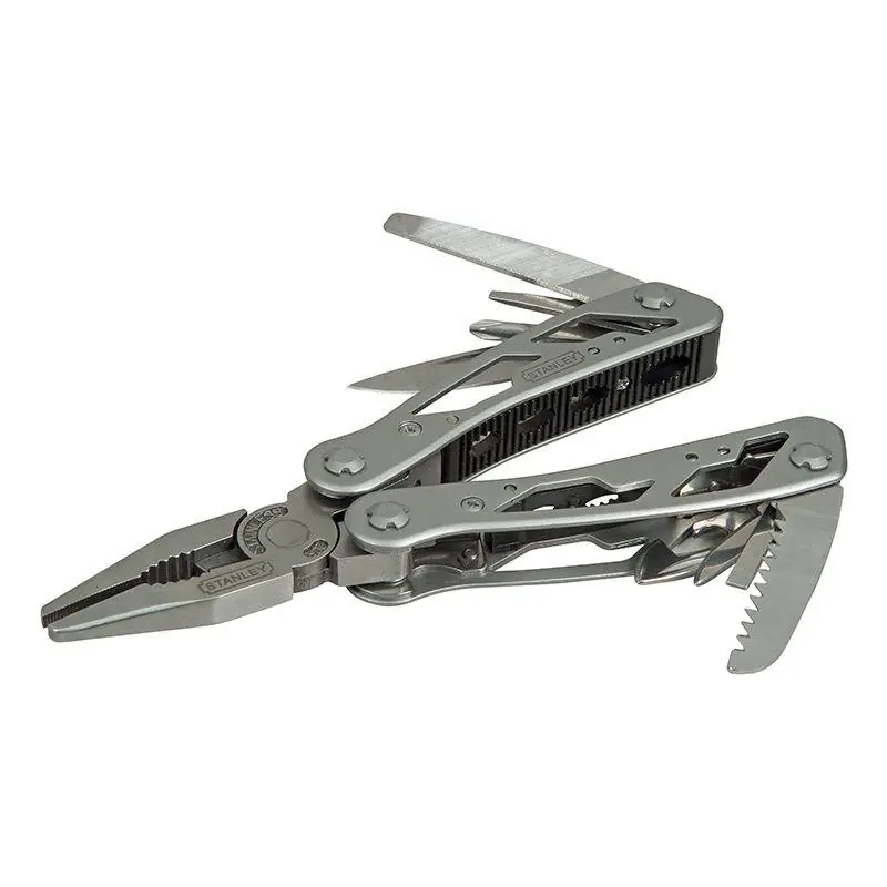 Multiverktyg tillverkat i rostfritt stål med polerad finish. Idealisk för daglig användning på jobbet (industri, bil- och byggverksamhet) eller i hemmet. Multiverktyget innehåller: kombinationstång med räfflade käftar, avbitartång, såg, liten kniv, stor kniv, flasköppnare, tång med rundade käftar, utsvängd skruvmejsel (3 mm), utsvängd skruvmejsel (6 mm), utsvängd skruvmejsel (8 mm), Phillips 1 skruvmejsel och fil.