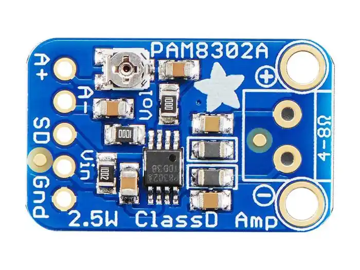 Comes with a fully assembled and tested breakout board. We also include header to plug it into a breadboard and a 3.5mm screw-terminal blocks so you can easily attach/detach your speaker. You will be ready to rock in 15 minutes! Speaker is not included, use any 4 ohm or greater impedance speaker.