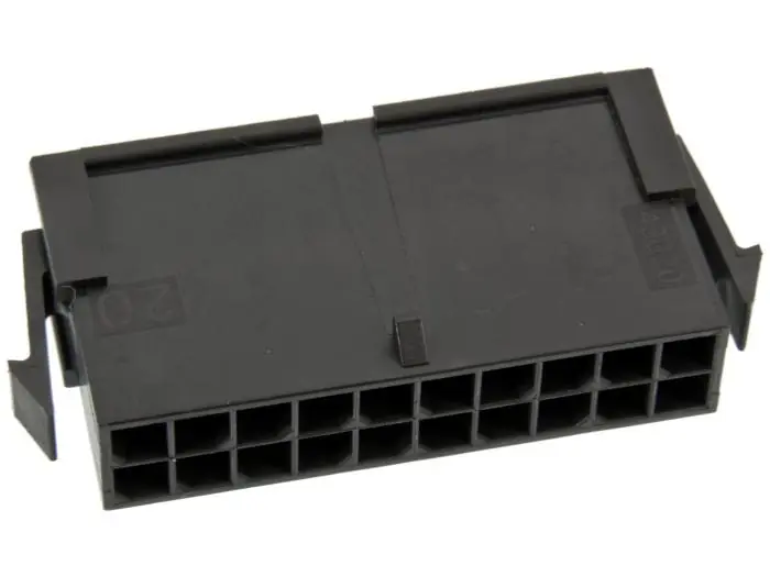 20-poligt kontakthus i Molex Micro-Fit serie för kabel- till kabel-anslutningar. Kontakthusen har snäpplås för att förhindra oavsiktlig urkoppling. 3mm delning. Upp till 5A strömtålighet. Bestyckas med crimphylsor.