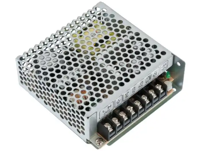 Kompakt switchad strömförsörjning med tre fasta utgångar på +5VDC, +12VDC och -12VDC. Skruvplintar för samtliga anslutningar. Trimpot för justering av 5V. Skyddat mot överbelastning, överspänning och kortslutning.